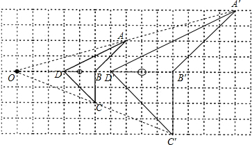 分析:连接OA,OB,OC,OD并延长到OA′,OB′,OC′,OD′,使OA′,OB′,OC′,OD′的长度是OA,OB,OC,OD的2倍.顺次连接各点.