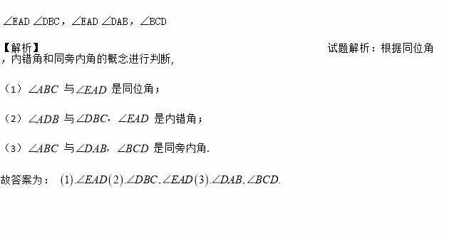 如图,∠ABC与_____是同位角;∠ADB与________是内错角;∠ABC与___________是同旁内角.