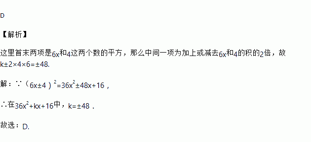 若是一个完全平方式,则k的值为