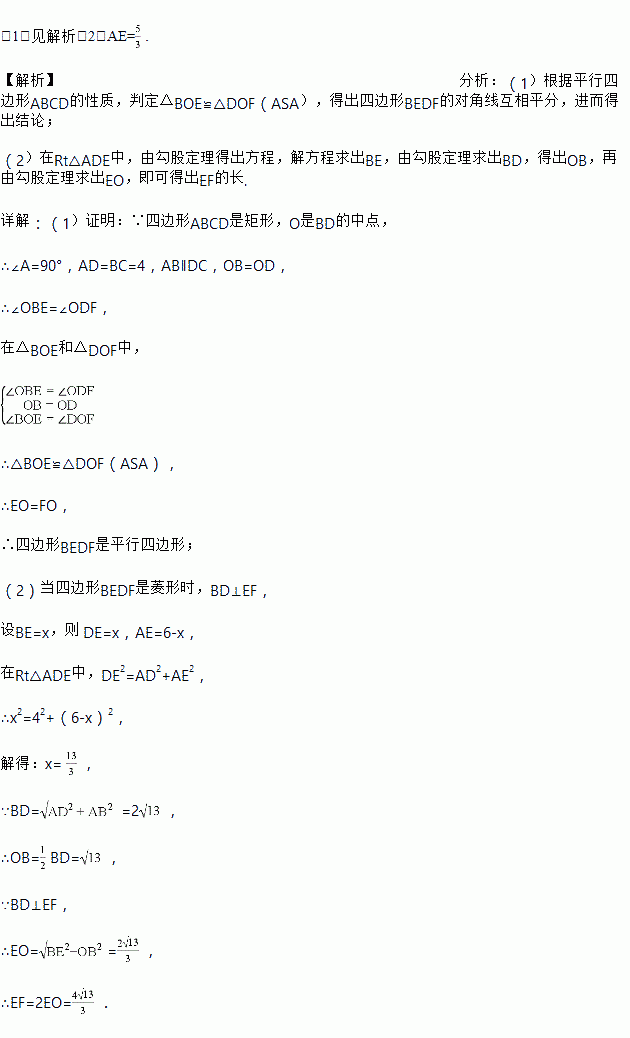 (2)当四边形BEDF是菱形时,求AE的长.
