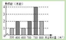 年每个月的用水量,统计得到的数据绘制了下面的两幅统计图.图1是去年这50户家庭月总用水量的折线统计图,图2是去年这50户家庭月总用水量的不完整的频数分布直方图.![]()