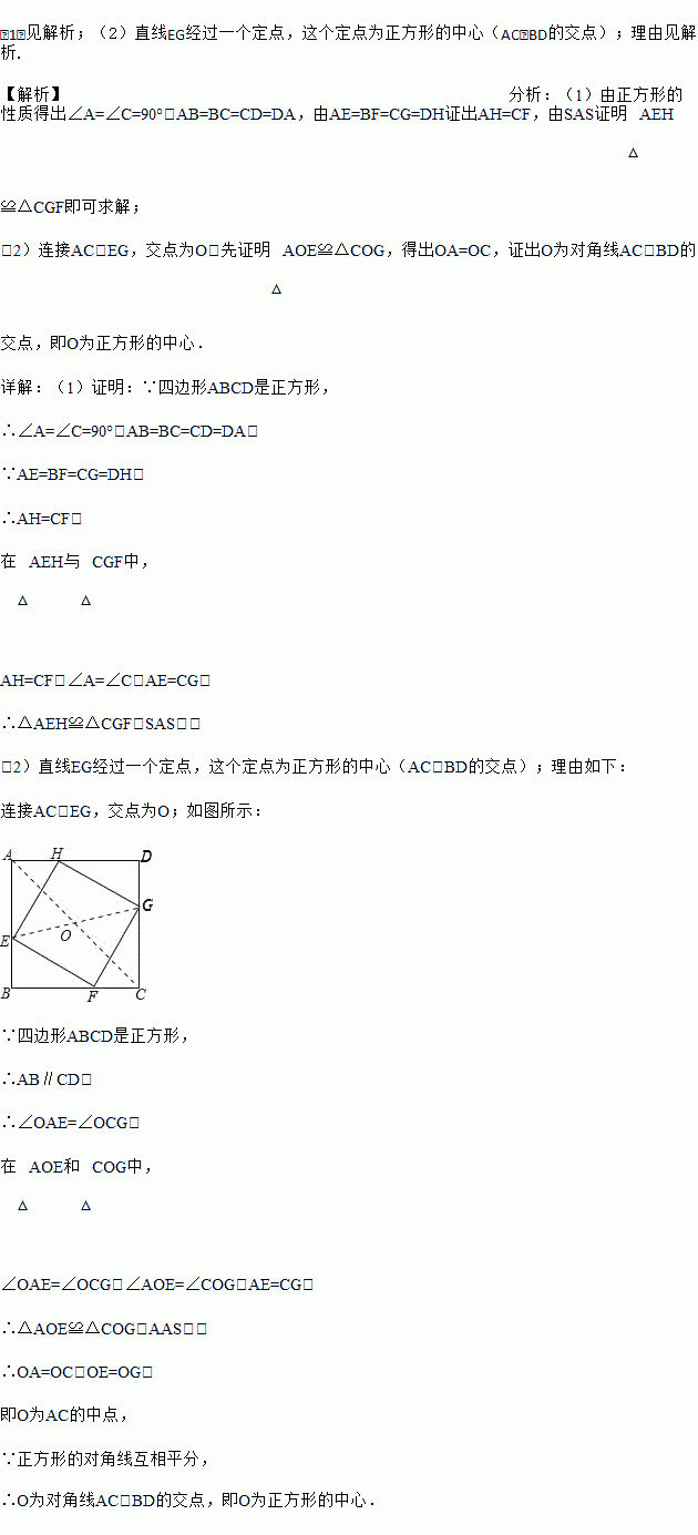 如图,在正方形ABCD中,点E、F、G、H分别是AB、BC、CD、DA边上的动点,且AE=BF=CG=DH.