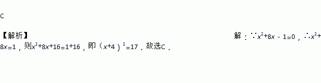 A. (x+4)2=1 B. (x+8)2=1 C. (x+4)2=17 D. (x+8)2=65