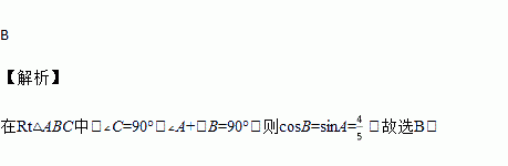 在Rt△ABC中,∠C =90°,sinA=,则cosB的值等于( )