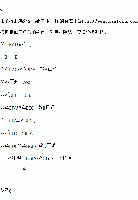 C. △BDF∽△BEC D. △BDF∽△BAE