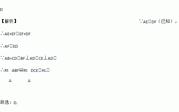 已知:如图,点A,E,F,D在同一条直线上,AE=DF,AB=CD,BF⊥AD,CE⊥AD,垂足分别为F,E,则△ABF≌△DCE的依据是( )