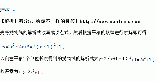 把拋物线y=2x2﹣4x+3向左平移1个单位长度,得到的抛物线的解析式为_________.