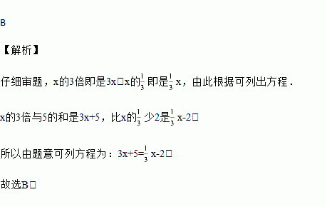 根据“x的3倍与5的和比x的少2”列出方程是( ).