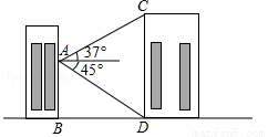 如图,小明在教学楼A处分别观测对面实验楼CD底部的俯角为45°,顶部的仰角为37°,已知教学楼和实验楼在同一平面上,观测点距地面的垂直高度AB为15m,求实验楼的垂直高度即CD长(精确到1m).
