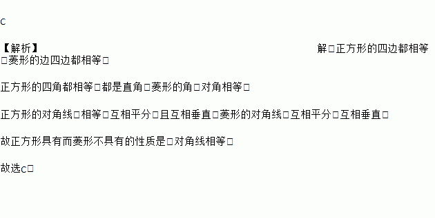 正方形具有而菱形不具有的性质是( )