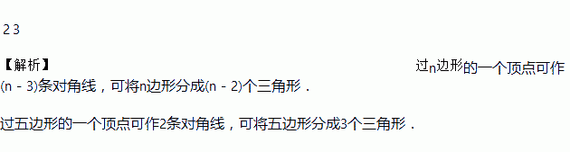 过五边形的一个顶点可作_____条对角线,可将五边形分成_____个三角形.