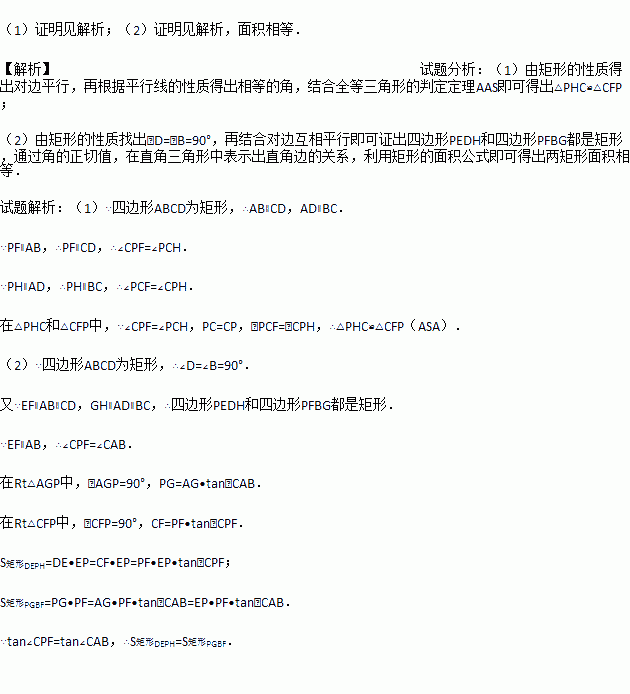 (2)证明四边形 PEDH和四边形 PGBF都是矩形,并直接写出它们面积之间的关系。