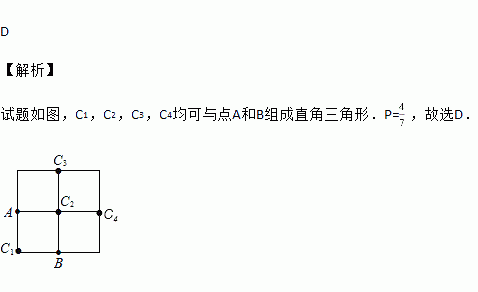 如图,在2×2的正方形网格中有9个格点,已经取定点A和B,在余下的7个点中任取一点C,使△ABC为直角三角形的概率是( )