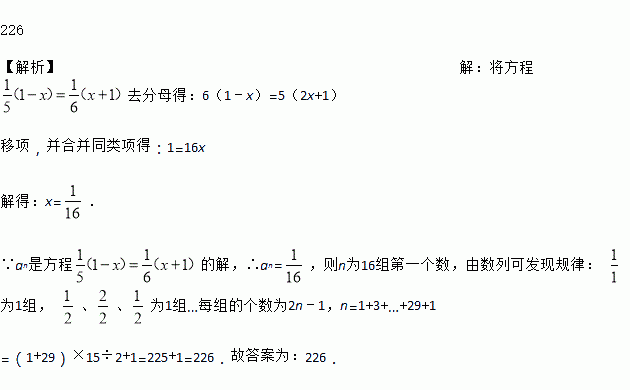已知一组数列: …,记第一个数为a1,第二个数为a2,…,第n个数为an,若an是方程 的解,则n=_____.