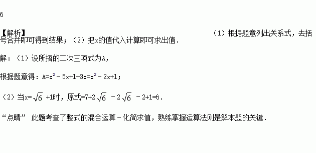 ﹣3x=x2﹣5x+1,若x=,则所捂二次三项式的值为__