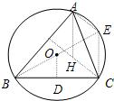 解:如图,设△ABC的外心为O,D为BC的中点,BO的延长线交⊙O于点E,连CE,AE.