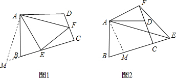 分析:(1)延长CB至M,使BM=DF,连接AM,证△ADF≌△ABM,证△FAE≌△MAE,即可得出答案;