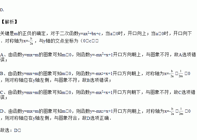 在同一直角坐标系中,函数y=mx+m和函数y=mx2+2x+2(m是常数,且m≠0)的图象可能是( )