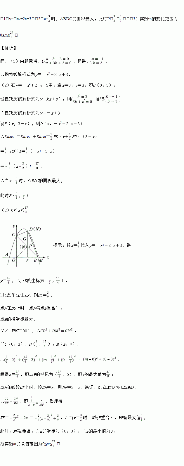 (3)如图2,在(2)的条件下,延长DP交x轴于点F,M(m,0)是x轴上一动点,N是线段DF上一点,当△BDC的面积最大时,若∠MNC=90°,请直接写出实数m的取值范围.