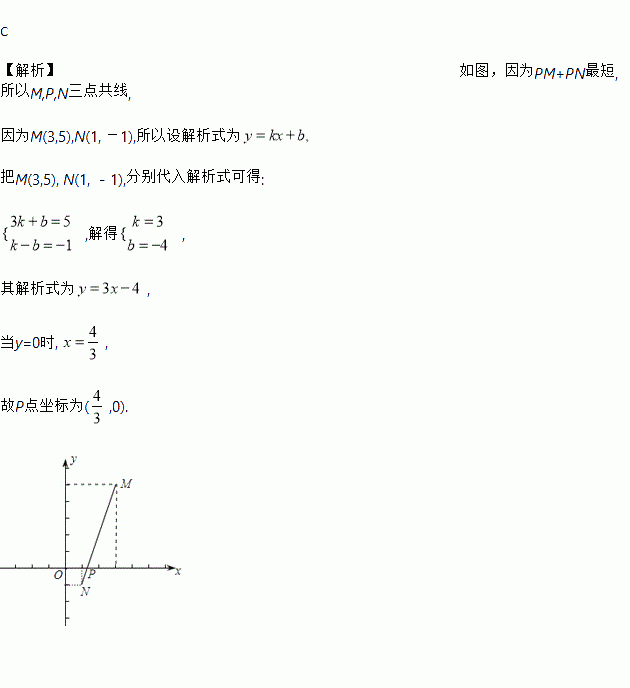 已知两点M(3,5),N(1,-1),点P是x轴上一动点,若使PM+PN最短,则点P的坐标应为( )