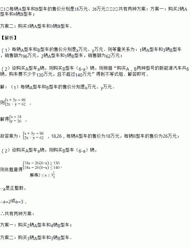 £¨2£©ÓÐÒ»¼Ò¹«Ë¾ÄâÏò¸Ãµê¹ºÂòA£¬BÁ½ÖÖÐͺŵÄÐÂÄÜÔ´Æû³µ¹²6Á¾£¬¹º³µ·Ñ²»³¬¹ý130ÍòÔª£¬ÇóÕâ´Î¹º½øBÐͳµ×î¶à¼¸Á¾£¿