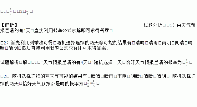 ()随机选择一天,恰好天气预报是晴的概率是___________.![]()