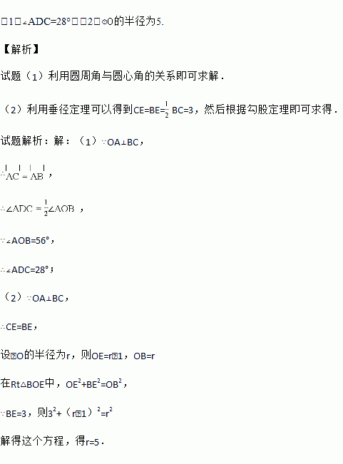 如图,在⊙O中,半径OA⊥弦BC,点E为垂足,点D在优弧上.