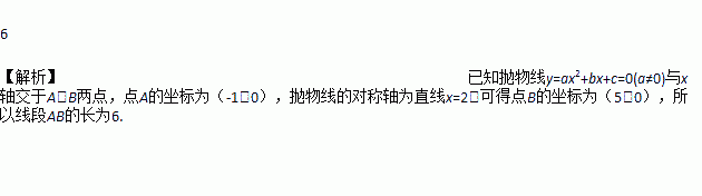 已知抛物线y=ax2+bx+c=0(a≠0)与x轴交于A,B两点,若点A的坐标为(-1,0),抛物线的对称轴为直线x=2,则线段AB的长为__________.