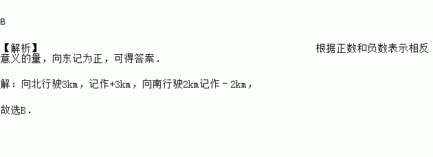 B 【解析】根据正数和负数表示相反意义的量,向东记为正,可得答案. 【解析】 向北行驶3km,记作+3km,向南行驶2km记作﹣2km, 故选B.