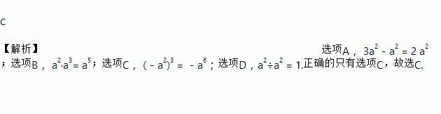 A. 3a2-a2 = 2 B. a2·a3= a6 C. (-a2)3 = -a6 D. a2÷a2 = a