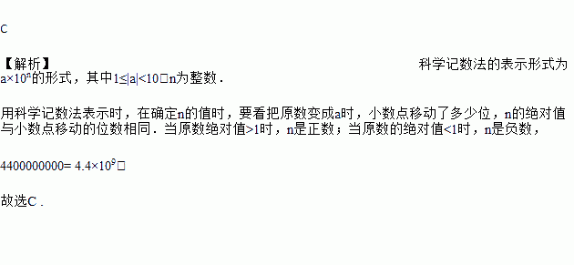 “一带一路”的“朋友圈”究竟有多大?“一带一路”涉及沿线65个国家,总涉及人口约4400000000,将4400000000用科学记数法表示为( )