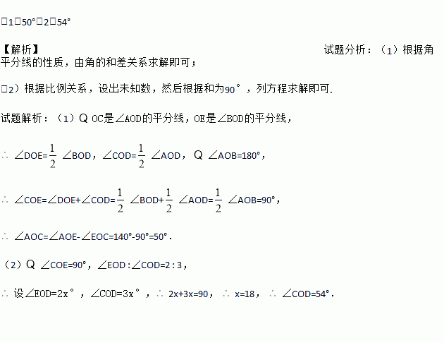 (2)若∠EOD :∠COD=2 : 3,求∠COD的度数.