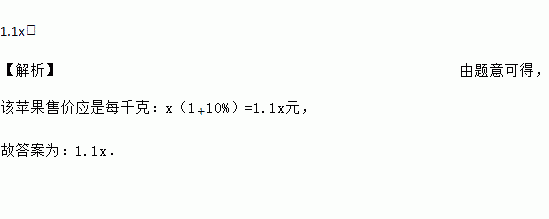 苹果进价是每千克x元,要得到10%的利润,则该苹果售价应是每千克_____元(用含x的代数式表示)