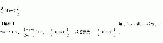 已知一次函数y=(2m﹣1)x﹣1+3m(m为常数),当x<2时,y>0,则m的取值范围为_____.