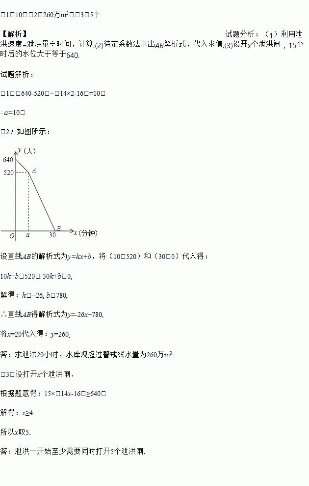 (3)若在开始泄洪后15小时内将水库降到警戒线水量,问泄洪一开始至少需要同时打开几个泄洪闸?
