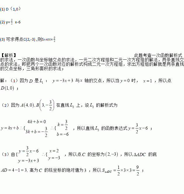 如图,直线l1的解析表达式为y=-3x+3,且l1与x轴交于点D,直线l2经过点A,B,直线l1,l2,交于点C.