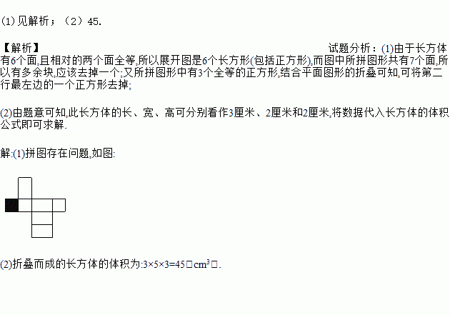 (2)若图中的正方形边长为3 cm,长方形的长为5 cm,宽为3 cm,请直接写出修正后所折叠而成的长方体的体积是 cm3.