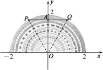 形如半圆型的量角器直径为4cm,放在如图所示的平面直角坐标系中(量角器的中心与坐标原点O重合,零刻度线在x轴上),连接60°和120°刻度线的外端点P、Q,线段PQ交y轴于点A,则点A的坐标为 ( )