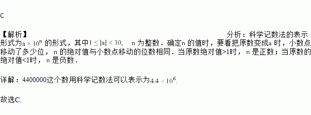 钓鱼岛是中国的固有领土,位于中国东海,面积约为4 400 000平方米,4 400 000这个数用科学记数法表示为( )