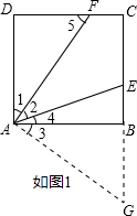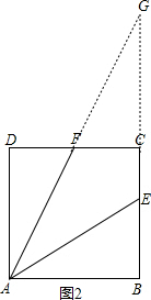 (2)如图2,延长AF交BC的延长线于点G,由正方形的性质就可以得出△ADF≌△GCF,就有AD=CG,∠DAF=∠G,进而得出AE=GE,就有∠G=∠CAF,从而得出∠DAF=∠EAF而得出结论.