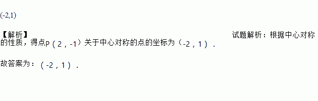 (-2,1) 【解析】试题解析:根据中心对称的性质,得点P(2,-1)关于中心对称的点的坐标为(-2,1). 故答案为:(-2,1).