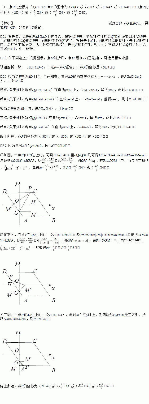(2)若点P在边AB,AD上,点P关于坐标轴对称的点Q落在直线y=x-1上,求点P的坐标.