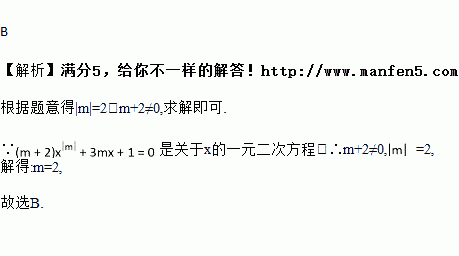 若方程是关于x的一元二次方程,则m =( )