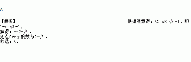 如图所示,数轴上点A、B分别表示1、,若点B关于点A的对称点为点C,则点C所表示的数为( )