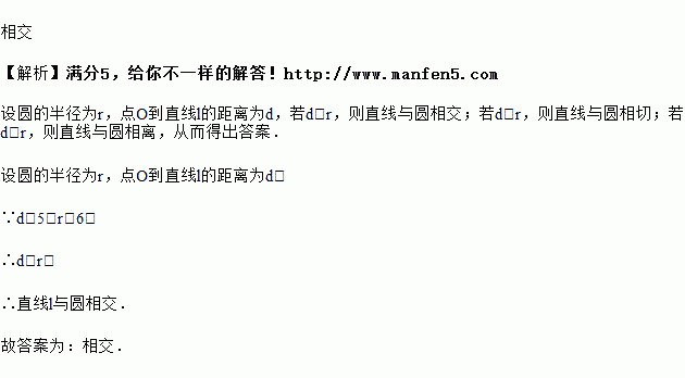已知的半径是,点到同一平面内直线的距离为,则直线与的位置关系是________.