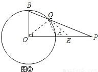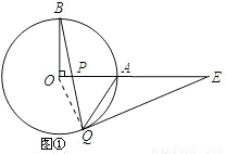 (人教版)已知:OA、OB是⊙O的半径,且OA⊥OB,P是射线OA上一点(点A除外),直线BP交⊙O于点Q,过Q作⊙O的切线交直线OA于点E.(1)如图①,若点P在线段OA上,求证:∠OBP+∠AQE=45°;