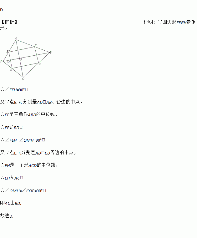 若顺次连结四边形ABCD各边中点所得四边形是矩形,则原四边形必定是( )