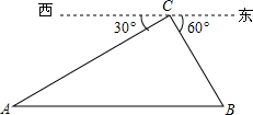 笔直的公路AB一侧有加油站C,已知从西面入口点A到C的距离为60米,西东两个入口A、B与加油站C之间的方向角如图所示,则A、B两个入口间的距离为( )