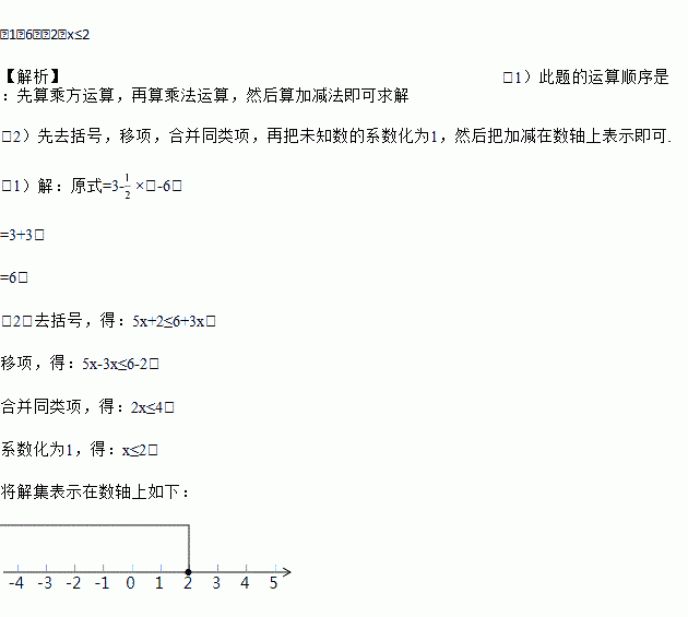 (2)解不等式:5x+2≤3(2+x),并把解在数轴上表示出来.