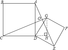 点评:此题考查了全等三角形的性质和正方形的性质,解题的关键是观察出△CDG和△ADE的两个对应边分别为正方形ABCD、GDEF的边,从而证出两个三角形全等.